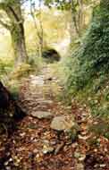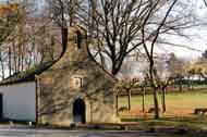 Nel cruz tuércese a la derecha, garrando la carretera AS-218 con dirección a Bárzana, que se sigue unos 700 metros hasta atopar un camín que s’abre a la esquierda y baxa al monesteriu d’Oubona.